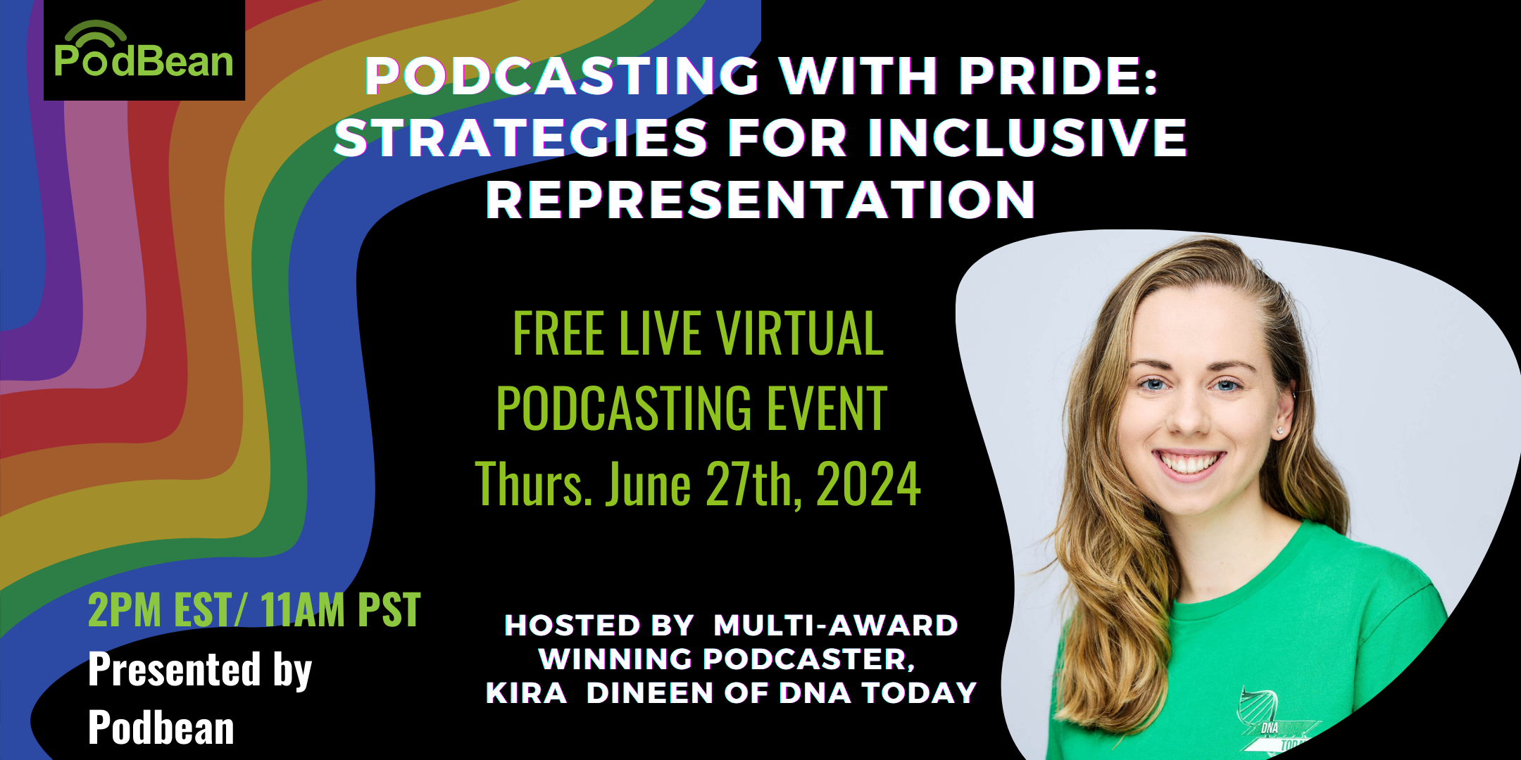 Join Kira Dinnen from DNA Today for 'Podcasting with Pride: Strategies for Inclusive Representation,' this live panel event will be exploring effective inclusivity in podcasting. Learn about engaging your community, and advocate respectfully. Register now to transform your podcast into an inclusive platform! This event is dedicated to advancing inclusivity within the podcasting community and to offer resources and practical tools . Timed to coincide with global Pride celebrations, this event invites you to deepen your understanding of inclusivity within the podcasting landscape. Engage with us to explore practical strategies that ensure your podcast is a welcoming platform for all voices. Key Takeaways: Safe Representation: Gain insights into how you can represent yourself and your community safely and authentically in your broadcasts. Community Engagement: Discover how community involvement can elevate your podcast and contribute to its success. Graceful Corrections: Master the skills needed to correct and continue conversations gracefully when mistakes happen. Non-Confrontational Advocacy: Develop techniques for advocating inclusivity in a non-confrontational manner, ensuring your podcast remains a respectful space for dialogue. Guest Interaction: Learn how to navigate guest interactions to foster a more inclusive and engaging discussion. Inclusive Content Strategies: Uncover strategies for creating content that resonates with a diverse audience, helping to broaden your listener base. Who Should Attend? This event is perfect for aspiring and established podcasters, content creators, digital marketers, and anyone interested in learning how to grow a successful podcast. Don't Miss Out! Kira Dineen, MS, LCGC, CG(ASCP)CM, is an esteemed podcast host and science communicator with over a decade of experience. Her flagship show, DNA Today, ranks in the top 1% globally and has won the Best Science and Medicine Podcast Award for three consecutive years. Kira's expertise and hosting expertise is bolstered by her academic background with a BS in Diagnostic Genetics from the University of Connecticut and an MS in Genetic Counseling from Sarah Lawrence College. professional credentials as a certified cytogenetic technologist and licensed genetic counselor.
